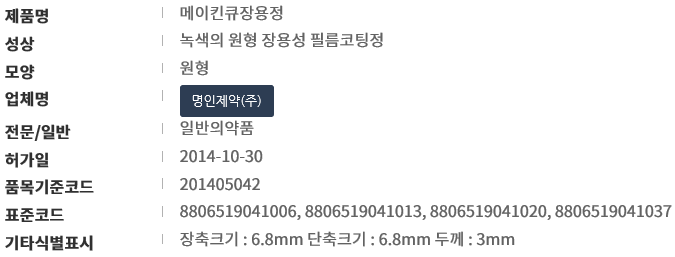 명인제약 주식회사 제품의 일반의약품으로 의사의 처방 없이 구매가 가능합니다.