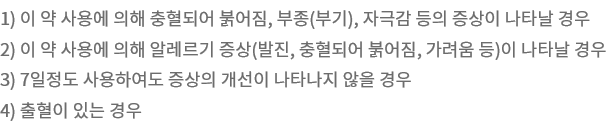 일주일 정도 사용하였음에도 증상의 개선이 보이지 않을 경우 사용 중지합니다.