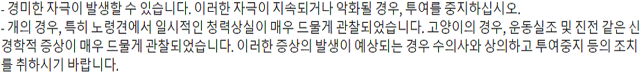 또한 임산 한 동물이나 수유 중인 동물의 경우 수의사와 상담 후 사용 여부를 결정하시길 바랍니다.