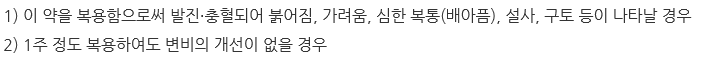 또한 이 약 복용 후 발진, 가려움, 복통, 설사, 구토, 붉어짐 등의 이상 반응이 지속될 경우 약 복용 중지 후