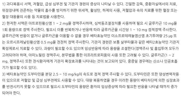 과복용 한 경우 위세척이나 하제 사용 등의 방법으로 처치를 권장합니다.