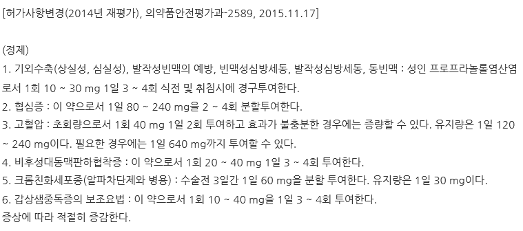 프로프라놀롤 염산염은 고혈압뿐 아니라 부정맥, 협심증, 크롬 친화 세포증 등에 효능을 보입니다.
