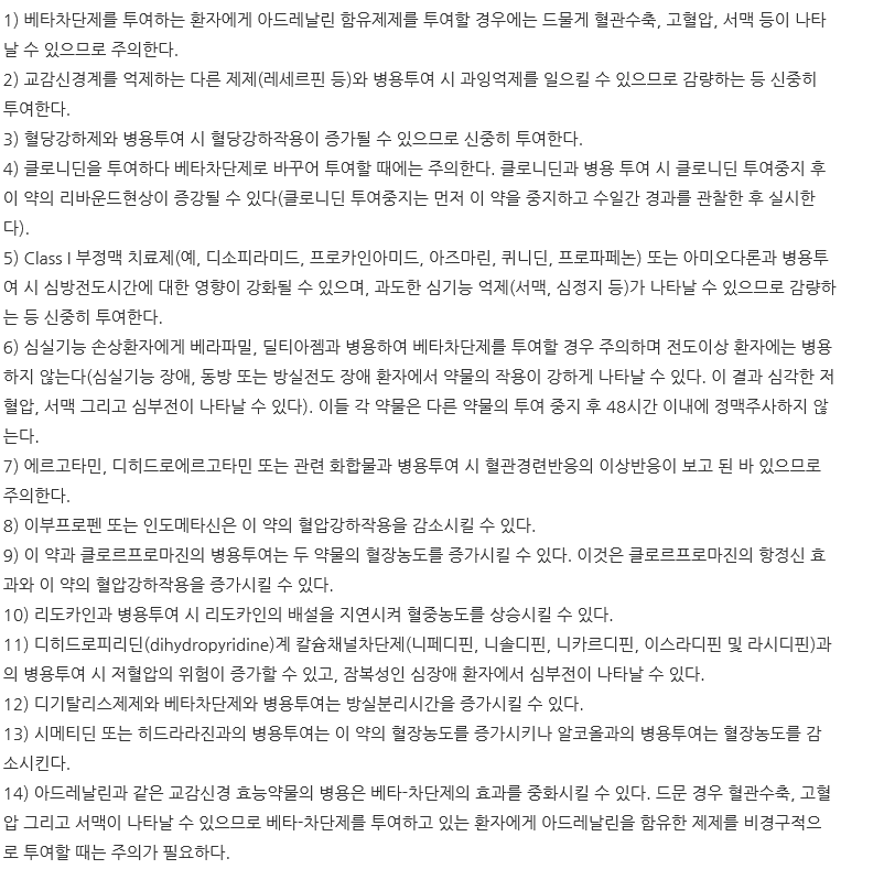 특히 인데놀정과 리도카인을 병용할 경우 혈장농도가 30%까지 증가될 수 있습니다.