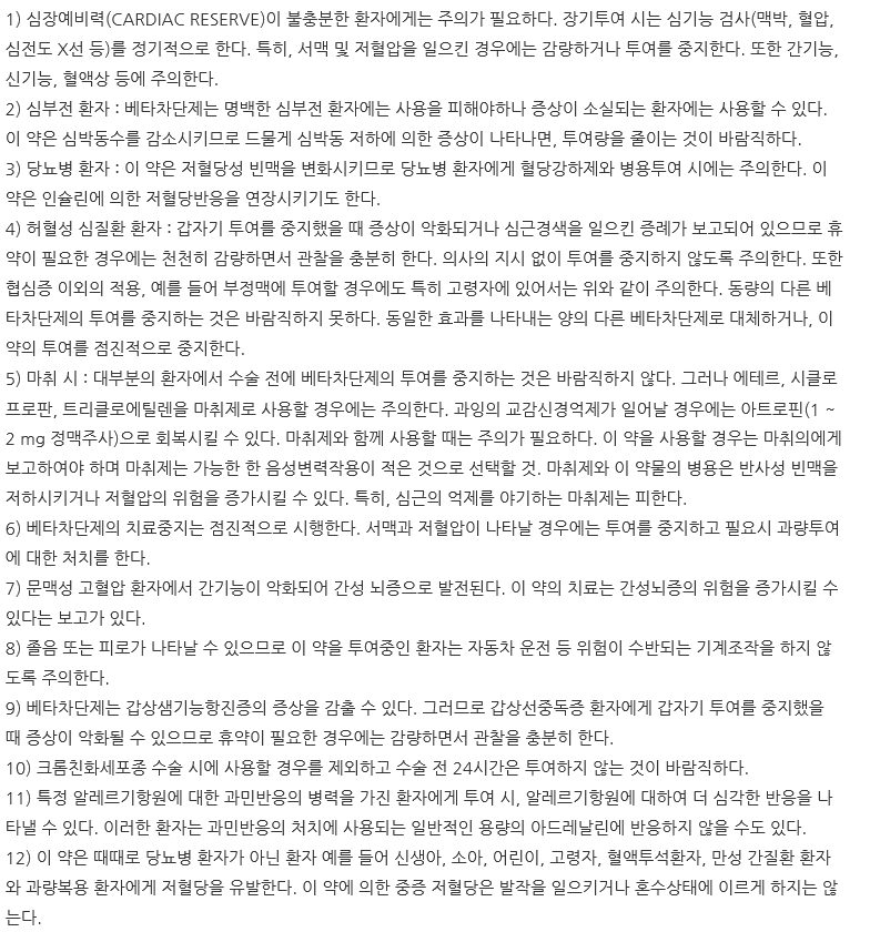 소아, 임산부, 수유부, 저혈압 환자, 울혈 심부전 환자, 심인성 쇼크 환자, 대사성 산증 환자의 경우 복용 권장하지 않습니다.
