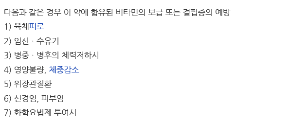 이 성분이 부족할 경우 간질성혼수, 구내염, 발진, 피부염등이 생기기도 합니다.