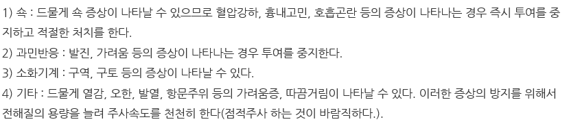 주사속도를 최대한 천천히 하면 혈관통을 최소화 시킬 수 있으니 참고하시길 바랍니다.